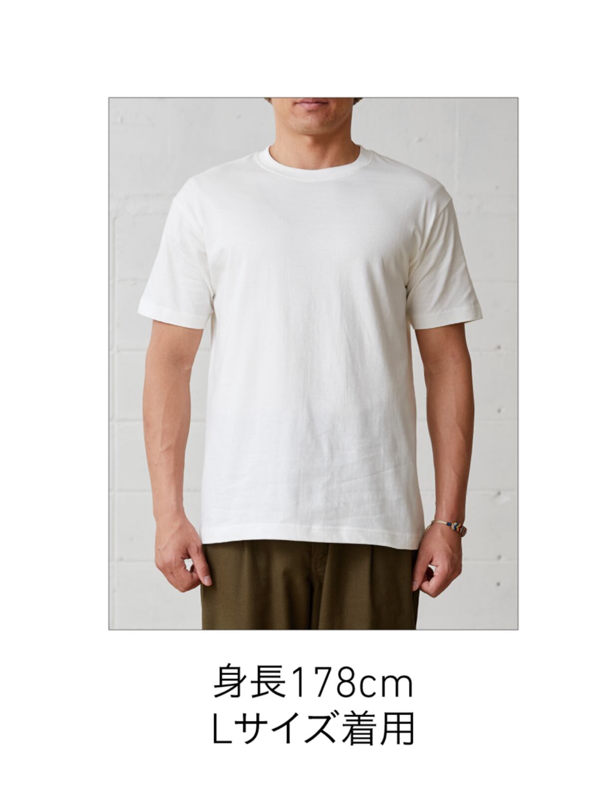 農薬や化学肥料を使わずに育てたコットンを100%使った地球にも肌にも優しいTシャツで、襟まわりは何度着ても伸びにくい二本針縫製に仕立てています。