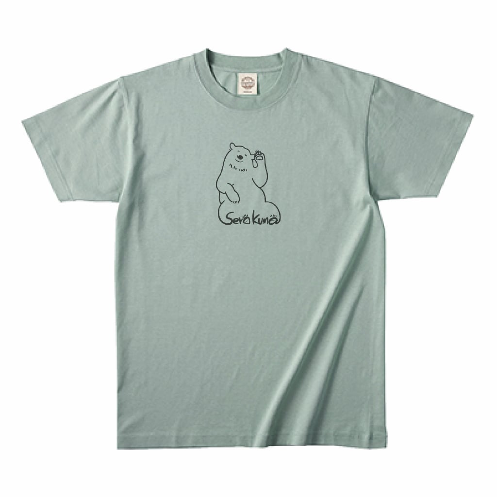 シンプルなグリーン(シャロウグリーン)のTシャツに、愛らしいセロクマ君のデザインが映えます。